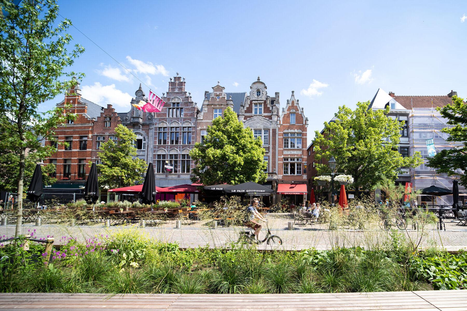 We pasten de voorbije jaren de IJzerenleen aan om deze historische straat met mooie winkels en imposante gevels autoluwer en aantrekkelijker te maken. Eind 2022 werd de belevingsstrook uitgebreid en gingen we hier en daar ontharden.